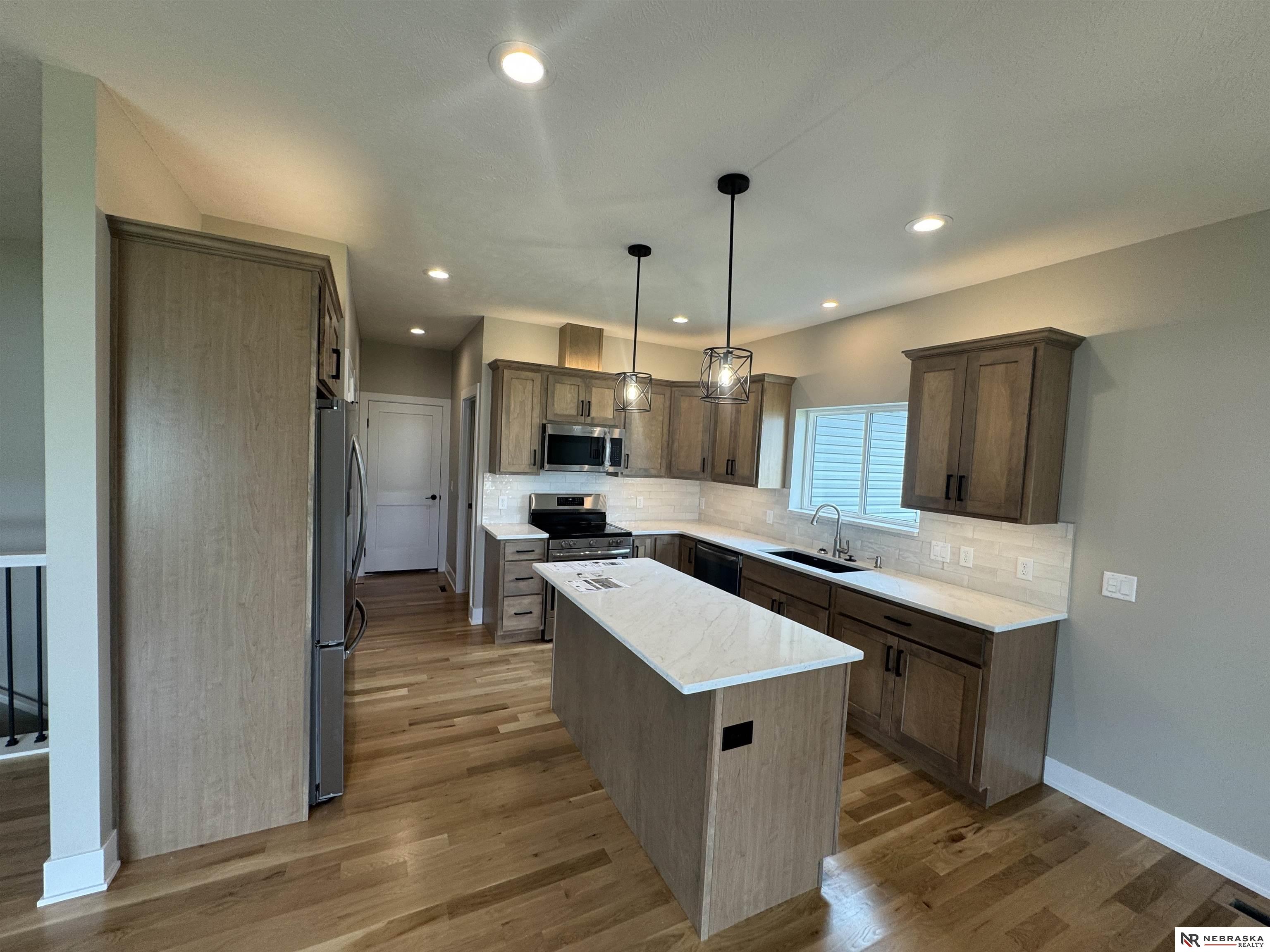 Spring Valley Homes built a spacious Ranch Style home with 4 bedrooms and 3 bathrooms. Including a large primary suite with a spacious bathroom and walk in closet. This home offers plenty of space for relaxation and privacy. The fully finished basement, complete with a wet bar and ample storage, adds even more versatility to the living space. A 3 car garage provides ample room for parking and storage, while the porch and covered deck offer inviting outdoor area to enjoy. The fully insulated and finished garage adds to minimize its environmental impact while potentially reducing utility costs. From the main floor laundry to the two pantries (including a walk-in) in the kitchen, your home is thoughtfully designed for ease of living. Features like a water softener, and a whole house humidifier contribute to a comfortable and healthy indoor environment. Real onsite finished hardwood floors add a touch of elegance and durability to your home's interior, while including all appliances.